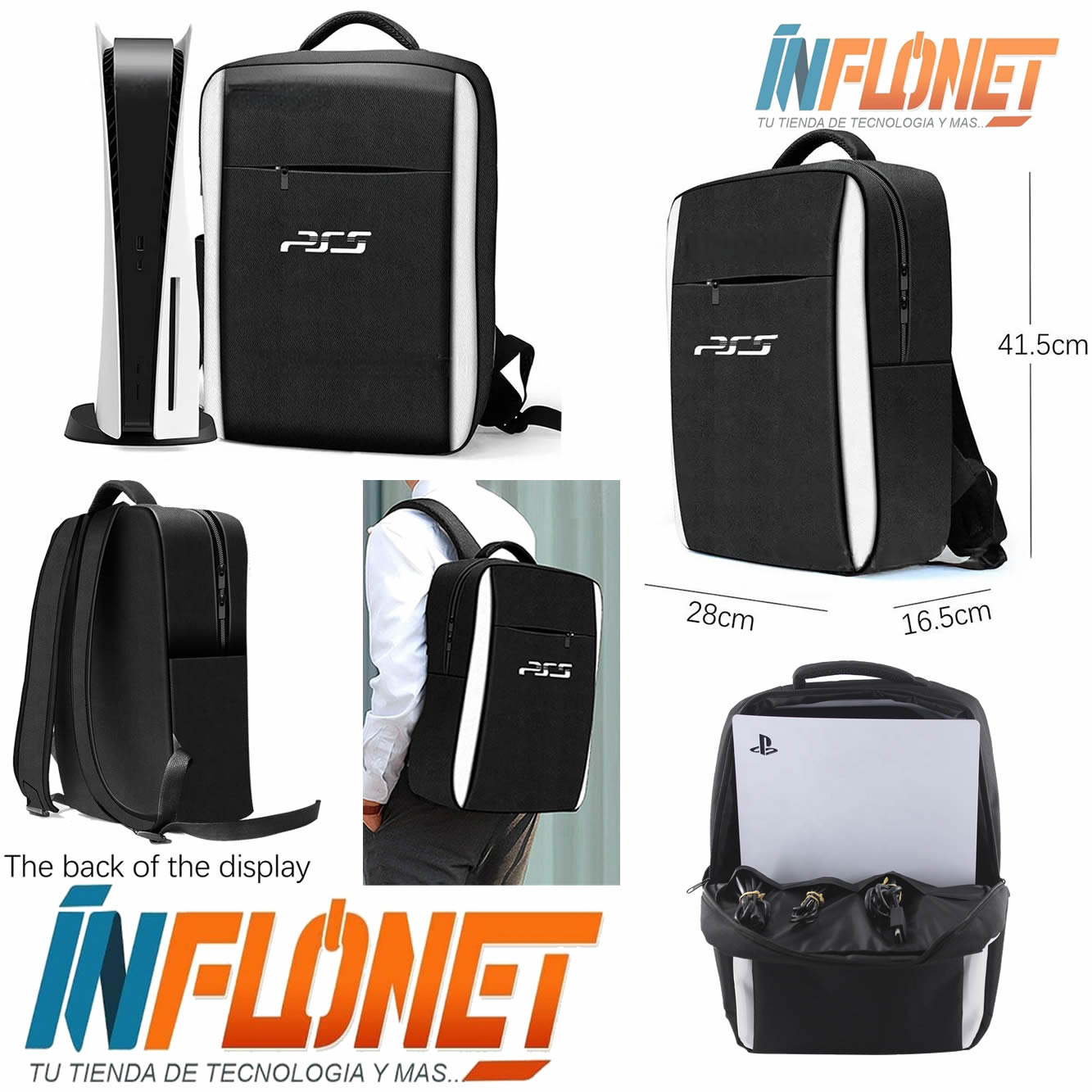 Mochila de Transporte para Espalda PS5 Fat- Slim – Pro color Negro/Blanco HS-PS5814
